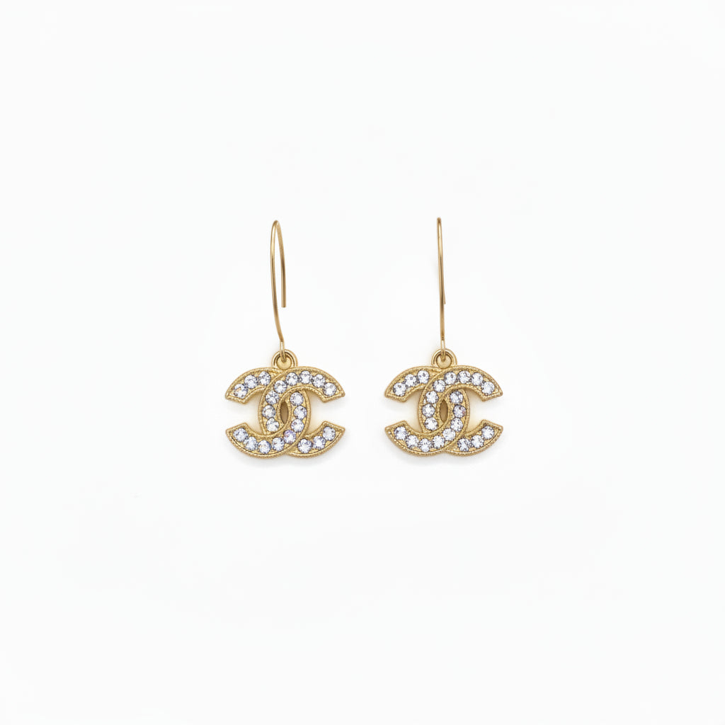 Gold tone pavé double-C charm earrings on gold tone stainless steel marquise ear wires for a sleek, boutique-ready sparkle. Lightweight with an easy swing that dresses up everyday looks or adds shine for a night out.